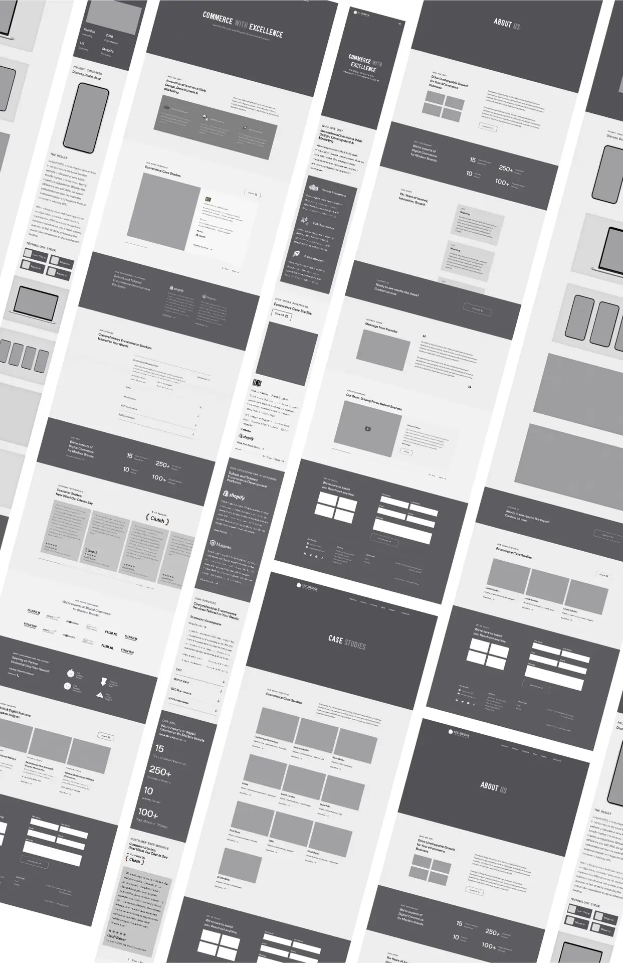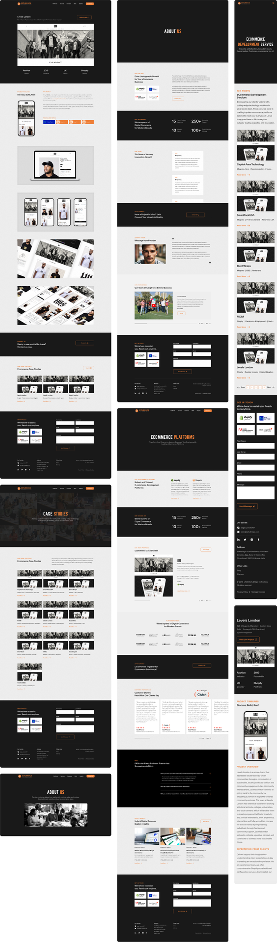 The redesign process began with wireframing, where we structured the layout to support a logical flow for users. Our wireframes emphasized clear pathways to SetuBridge’s service offerings, product information, and client success stories. Each page layout was strategically designed to enhance user flow, making it easier for visitors to explore SetuBridge’s capabilities and understand their approach to ecommerce solutions.