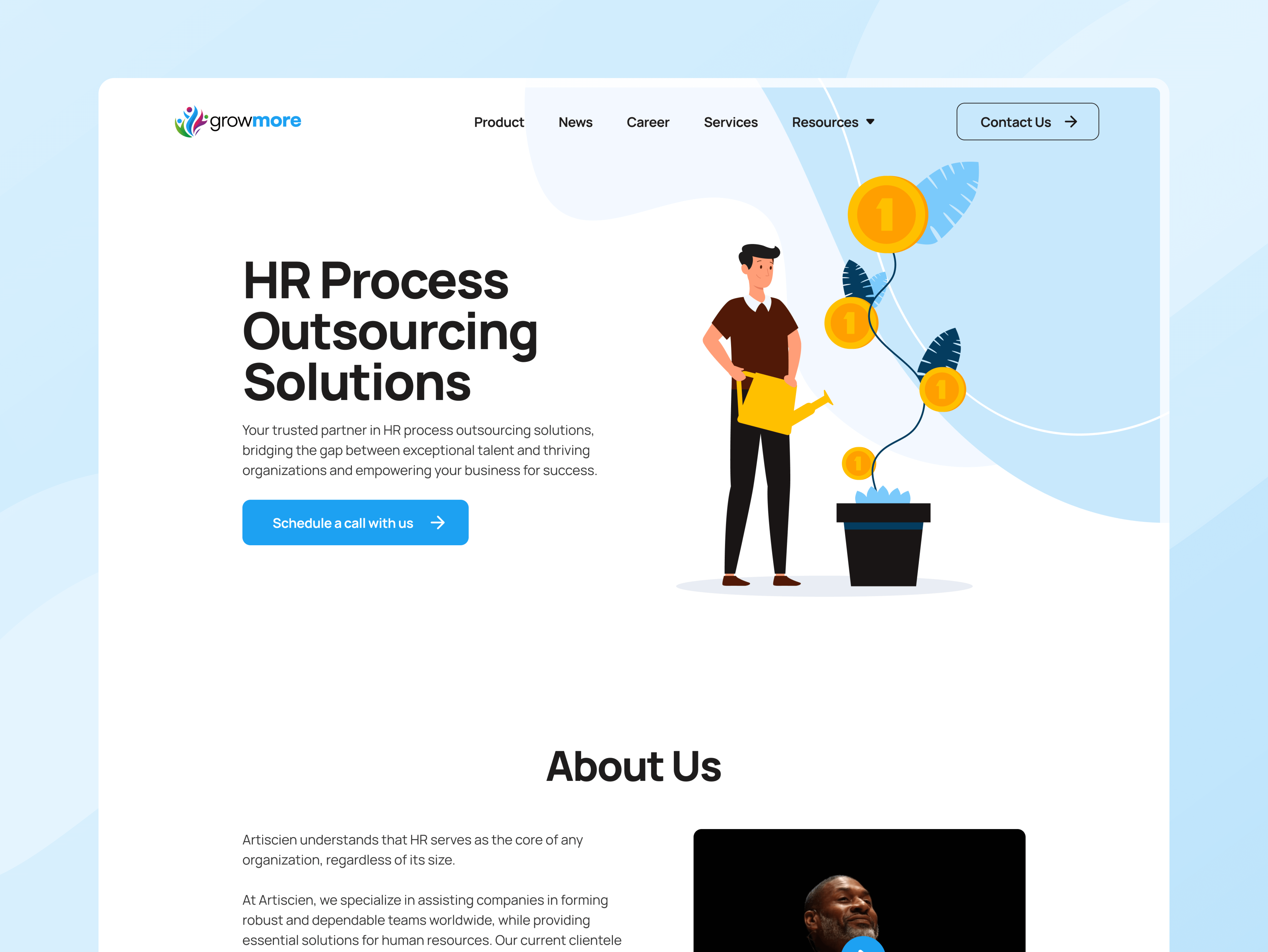 GrowMore, an HR Process Outsourcing Platform, sought to design their corporate website with the aim of enhancing Conversion Rate Optimization (CRO) and providing a more engaging user experience. GrowMore was determined to establish a stronger online presence, effectively communicate their services and products, and drive greater user engagement.