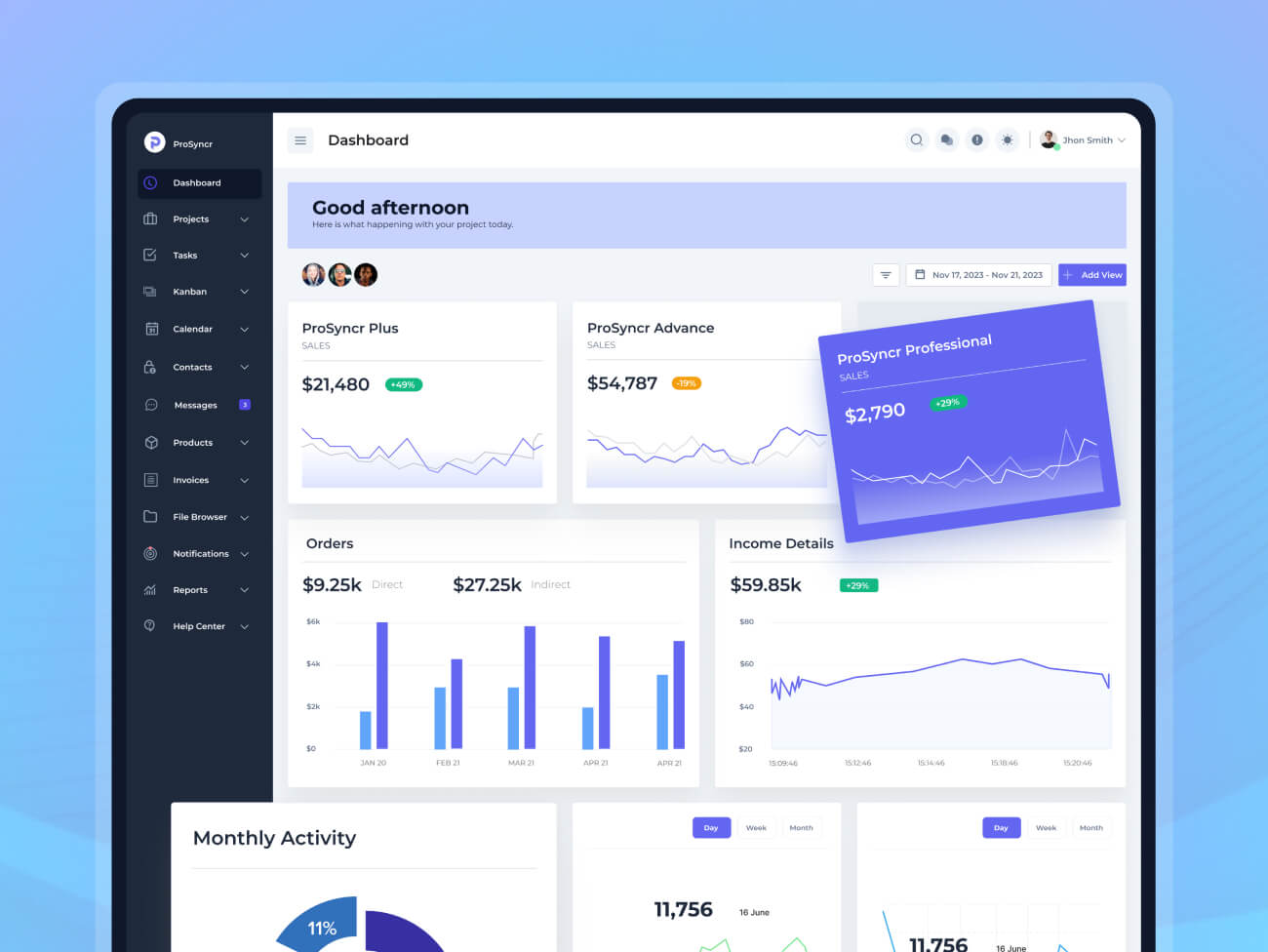 ProSyncr’s UI design aimed to strike a balance between aesthetics and functionality. We adopted a clean and modern design language, prioritizing user accessibility and visual appeal. Intuitive navigation, clear information hierarchy, and a cohesive color scheme were incorporated to enhance the overall user experience. The UI design aimed to create a platform that was not only efficient but also enjoyable for users to interact with during their project management activities.