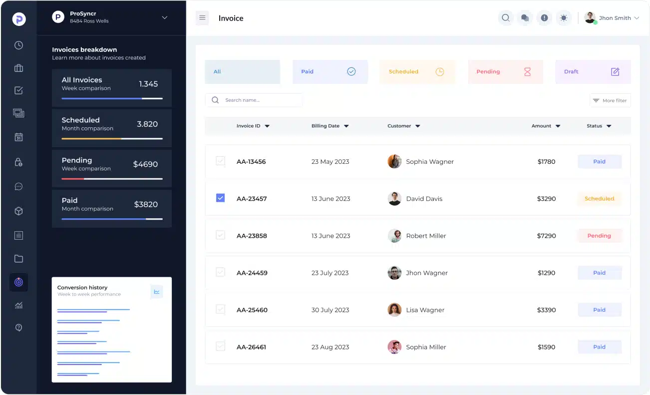 To maintain consistency across the platform, we implemented a robust design system within ProSyncr. This included a comprehensive library of reusable components, standardized design patterns, and a detailed style guide. The design system not only ensured a cohesive visual identity but also expedited the development process, allowing for faster iterations and updates.
