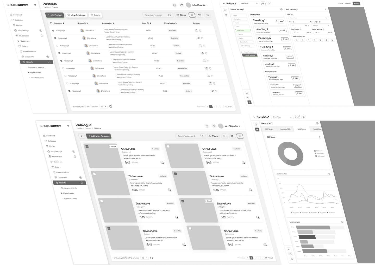 BloomBoost is a comprehensive marketplace catering to the needs of flower shop owners, offering them a unified solution for various aspects of their business, including choosing categories, flowers, CRM, communication, and community engagement. Despite its potential, the client expressed dissatisfaction with the previous design, citing numerous issues with the UI and UX. Our mission was to revamp the platform entirely, addressing the shortcomings and enhancing both the UI and UX to create a more seamless and enjoyable experience for users.